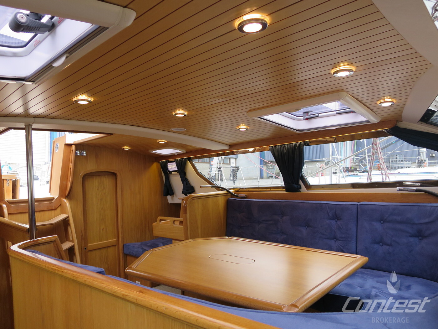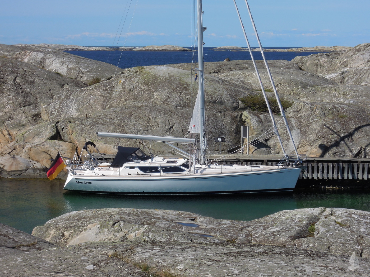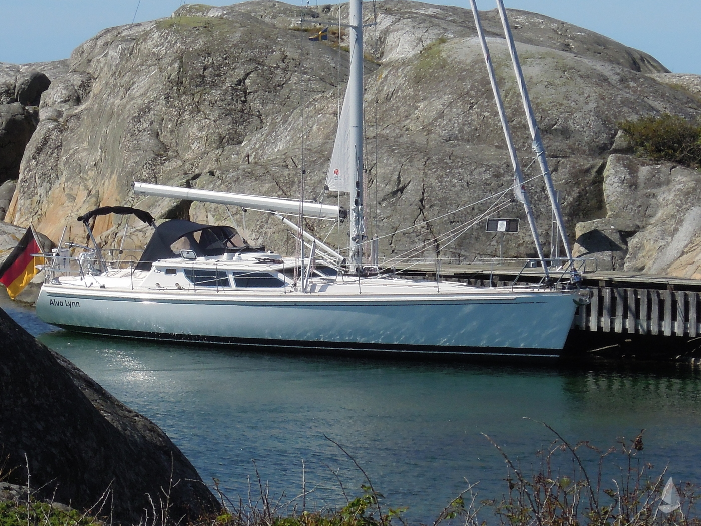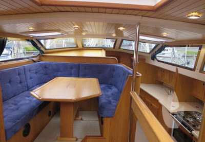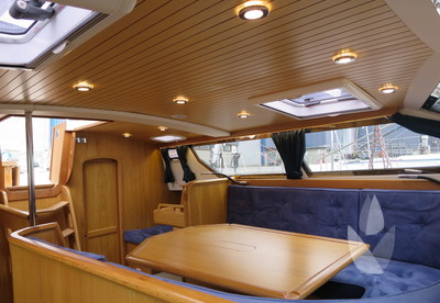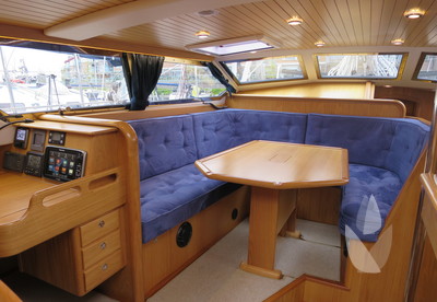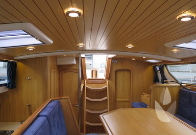 Alva Lynn a Pilot house yacht which is CE CERTIFIED, designed and and equipped for "Blue-Water-Cruising", with in-mast furling, furling genoa and cutter jib and a powerful engine. Large fuel and water tanks located low and central in the yacht are contributing to the excellent sailing performance. She has everything you could wish from a deck saloon yacht; the excellent look around, steering from inside, the spacious feeling and lots of light! The fresh looking interior is in American white oak in combination with blue Alcantara upholstery. The practical linnea galley has lots of work surface space. Alva Lynn" is a unique opportunity to buy an almost new yacht for the fraction of the new build price.