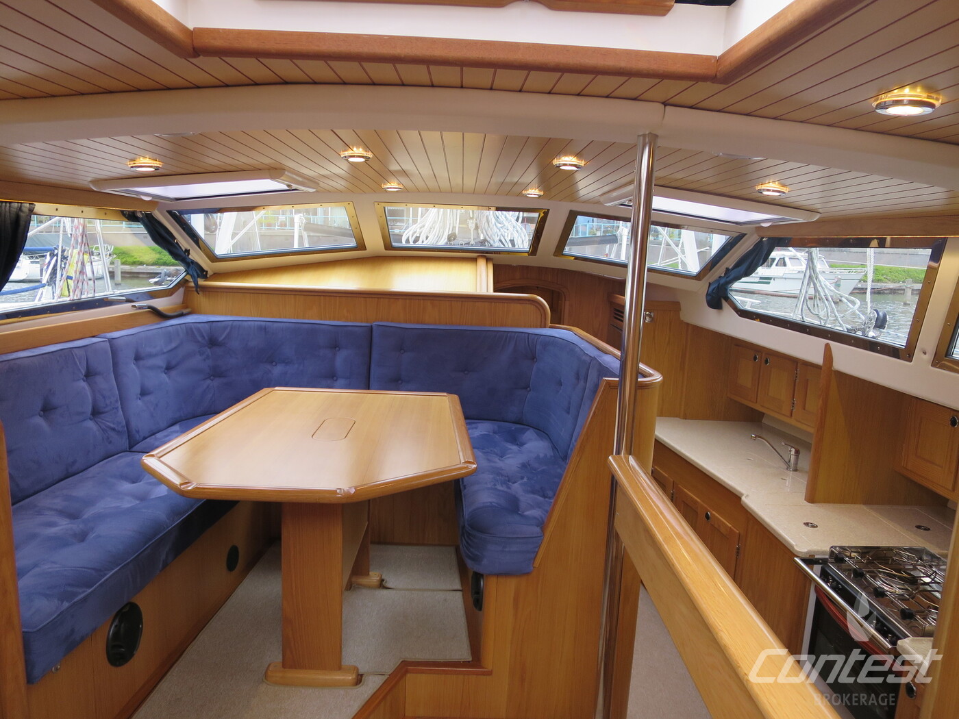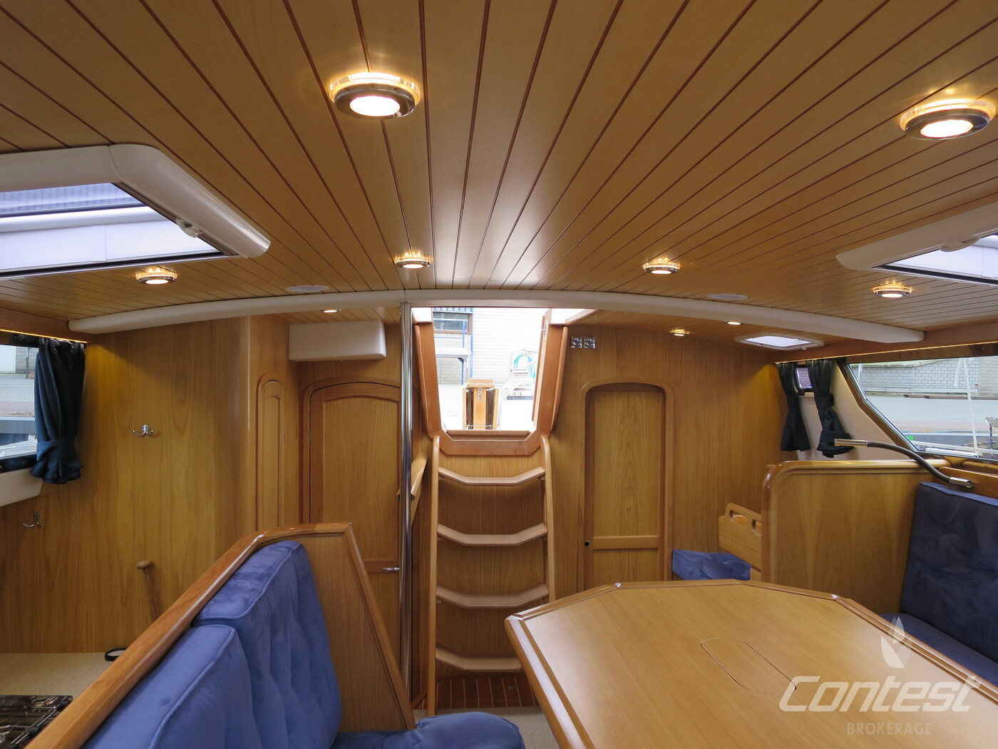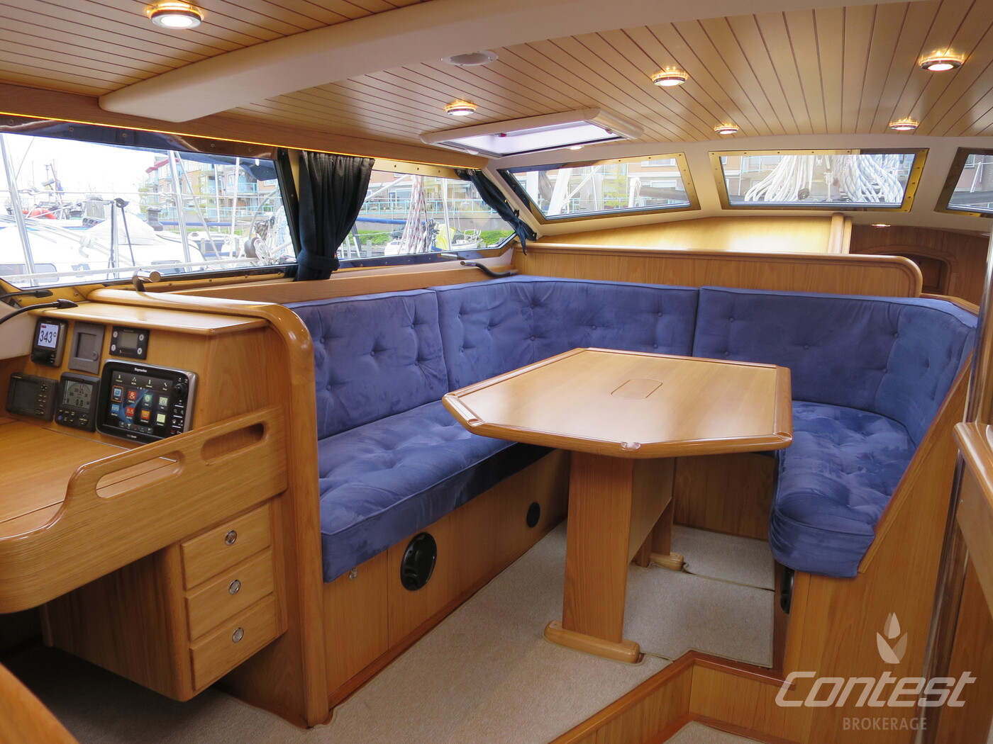 Alva Lynn a Pilot house yacht which is CE CERTIFIED, designed and and equipped for "Blue-Water-Cruising", with in-mast furling, furling genoa and cutter jib and a powerful engine. Large fuel and water tanks located low and central in the yacht are contributing to the excellent sailing performance. She has everything you could wish from a deck saloon yacht; the excellent look around, steering from inside, the spacious feeling and lots of light! The fresh looking interior is in American white oak in combination with blue Alcantara upholstery. The practical linnea galley has lots of work surface space. Alva Lynn" is a unique opportunity to buy an almost new yacht for the fraction of the new build price.